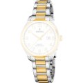 Esta correa de reloj de la :marca está hecha de acero inoxidable y se adjunta al reloj mediante pasadores de resorte. La banda tiene un ancho de 16 mm y se cierra mediante un cierre desplegable con botones pulsadores. La correa no tiene montura recta, lo que significa que esta correa sólo es adecuada para los relojes que se indican a continuación.