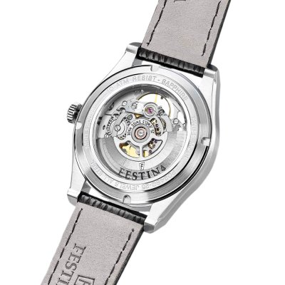 Este reloj marca Festina tiene una caja de Inox con un diámetro de 40 mm y cuenta con una correa de piel. Dentro de la caja se encuentra un mecanismo de Soprod de alta calidad el cual esta protegido por un cristal Zafiro.