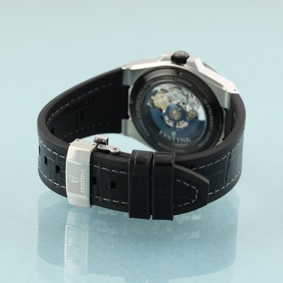 Este reloj marca Festina tiene una caja de Inox con un diámetro de 42 mm y cuenta con una correa de Goma. Dentro de la caja se encuentra un mecanismo de Soprod de alta calidad el cual esta protegido por un cristal Zafiro.