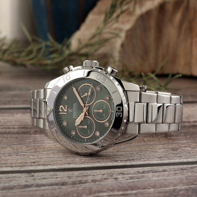 Este reloj marca Festina tiene una caja de Inox con un diámetro de 39 mm y cuenta con una correa de Inox. Dentro de la caja se encuentra un mecanismo de Miyota de alta calidad el cual esta protegido por un cristal Mineral.