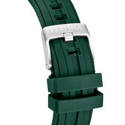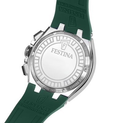 Este reloj marca Festina tiene una caja de Inox con un diámetro de 46 mm y cuenta con una correa de Goma. Dentro de la caja se encuentra un mecanismo de Miyota de alta calidad el cual esta protegido por un cristal Mineral.