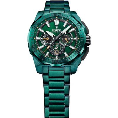 Este reloj marca Festina tiene una caja de Inox con un diámetro de 45.5 mm y cuenta con una correa de Inox. Dentro de la caja se encuentra un mecanismo de Miyota de alta calidad el cual esta protegido por un cristal Mineral.