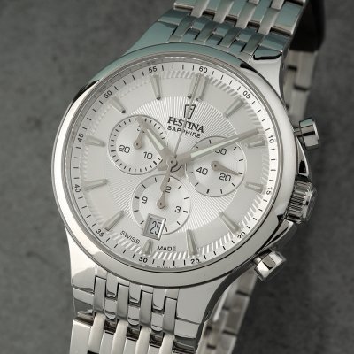 Este reloj marca Festina tiene una caja de Inox con un diámetro de 40 mm y cuenta con una correa de Inox. Dentro de la caja se encuentra un mecanismo de Ronda de alta calidad el cual esta protegido por un cristal Zafiro.