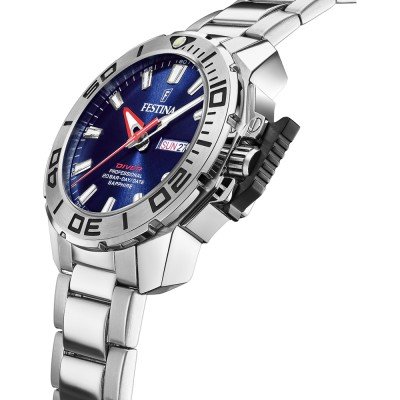 Este reloj marca Festina tiene una caja de Inox con un diámetro de 46 mm y cuenta con una correa de Inox. Dentro de la caja se encuentra un mecanismo de Miyota de alta calidad el cual esta protegido por un cristal Zafiro.