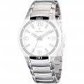 Esta correa de reloj de la :marca está hecha de acero inoxidable y se adjunta al reloj mediante pasadores de resorte. La banda tiene un ancho de 27 mm y se cierra mediante un cierre desplegable con botones pulsadores. La correa no tiene montura recta, lo que significa que esta correa sólo es adecuada para los relojes que se indican a continuación.