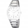 Esta correa de reloj de la :marca está hecha de acero inoxidable y se adjunta al reloj mediante pasadores de resorte. La banda tiene un ancho de 23 mm y se cierra mediante un cierre desplegable con botones pulsadores. La correa no tiene montura recta, lo que significa que esta correa sólo es adecuada para los relojes que se indican a continuación.