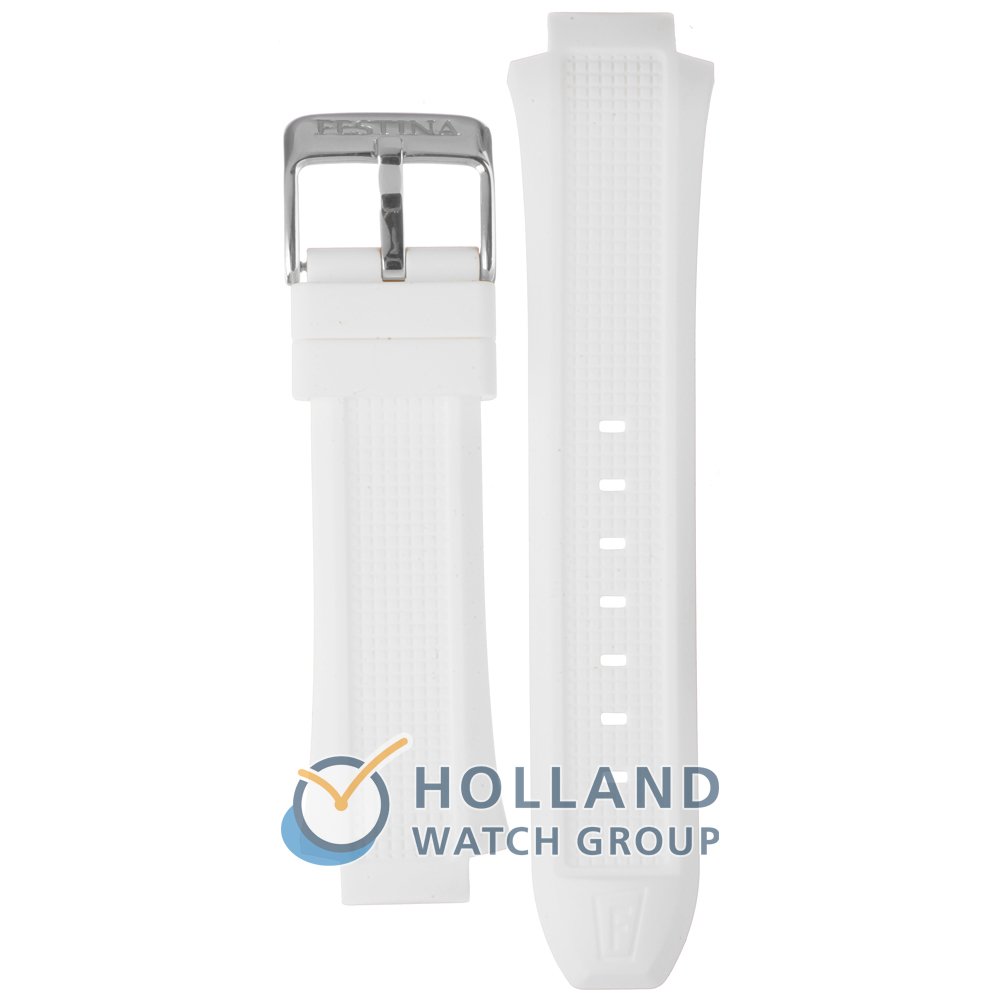 Esta correa de reloj de la :marca está hecha de goma de silicona y se adjunta al reloj mediante pasadores de resorte. La banda tiene un ancho de 24 mm y se cierra mediante un hebilla. La correa no tiene montura recta, lo que significa que esta correa sólo es adecuada para los relojes que se indican a continuación.