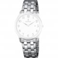 Esta correa de reloj de la :marca está hecha de acero inoxidable y se adjunta al reloj mediante pasadores de resorte. La banda tiene un ancho de 21 mm y se cierra mediante un cierre desplegable con botones pulsadores. La correa no tiene montura recta, lo que significa que esta correa sólo es adecuada para los relojes que se indican a continuación.