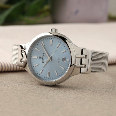 Este reloj marca Festina tiene una caja de Inox con un diámetro de 33 mm y cuenta con una correa de Inox. Dentro de la caja se encuentra un mecanismo de Miyota de alta calidad el cual esta protegido por un cristal Zafiro.