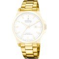 Esta correa de reloj de la :marca está hecha de acero inoxidable y se adjunta al reloj mediante pasadores de acero. La banda tiene un ancho de 25 mm y se cierra mediante un cierre de mariposa invisible. La correa no tiene montura recta, lo que significa que esta correa sólo es adecuada para los relojes que se indican a continuación.