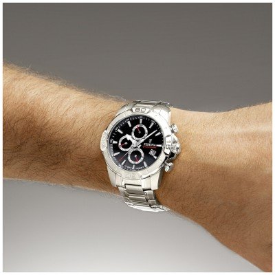 Este reloj marca Festina tiene una caja de Inox con un diámetro de 45 mm y cuenta con una correa de Inox. Dentro de la caja se encuentra un mecanismo de Miyota de alta calidad el cual esta protegido por un cristal Mineral.