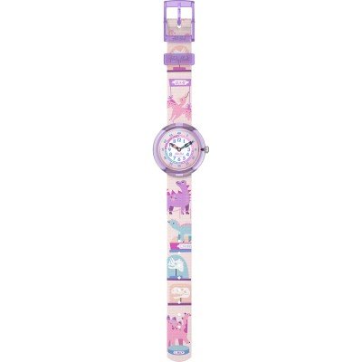 Este reloj marca Flik Flak tiene una caja de Plástico de origen biológico con un diámetro de 29.5 mm y cuenta con una correa de Textil. Dentro de la caja se encuentra un mecanismo de ETA de alta calidad el cual esta protegido por un cristal Acrílico.
