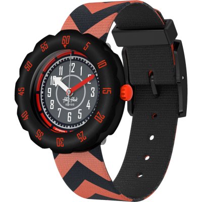 Este reloj marca Flik Flak tiene una caja de Plástico de origen biológico con un diámetro de 33.6 mm y cuenta con una correa de Textil. Dentro de la caja se encuentra un mecanismo de ETA de alta calidad el cual esta protegido por un cristal Acrílico.