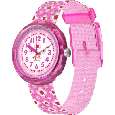 Este reloj marca Flik Flak tiene una caja de Plástico de origen biológico con un diámetro de 30 mm y cuenta con una correa de Textil. Dentro de la caja se encuentra un mecanismo de ETA de alta calidad el cual esta protegido por un cristal Acrílico.