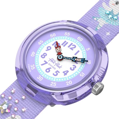 Este reloj marca Flik Flak tiene una caja de Plástico de origen biológico con un diámetro de 30 mm y cuenta con una correa de Textil. Dentro de la caja se encuentra un mecanismo de ETA de alta calidad el cual esta protegido por un cristal Acrílico.