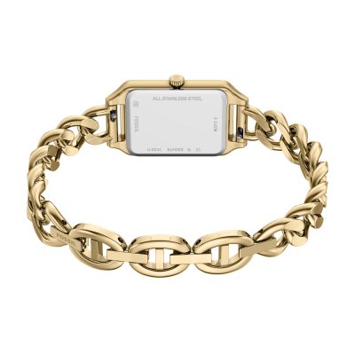 Este reloj marca Fossil tiene una caja de Inox con un diámetro de 23 mm y cuenta con una correa de Inox. Dentro de la caja se encuentra un mecanismo de Seiko Instruments Inc. de alta calidad el cual esta protegido por un cristal Mineral.