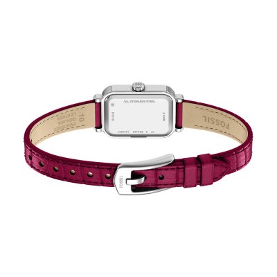 Este reloj marca Fossil tiene una caja de Inox con un diámetro de 18 mm y cuenta con una correa de piel. Dentro de la caja se encuentra un mecanismo de Seiko de alta calidad el cual esta protegido por un cristal Mineral.