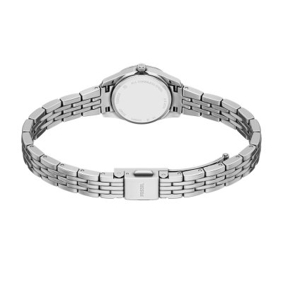 Este reloj marca Fossil tiene una caja de Inox con un diámetro de 20 mm y cuenta con una correa de Inox. Dentro de la caja se encuentra un mecanismo de Seiko Instruments Inc. de alta calidad el cual esta protegido por un cristal Mineral.