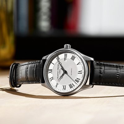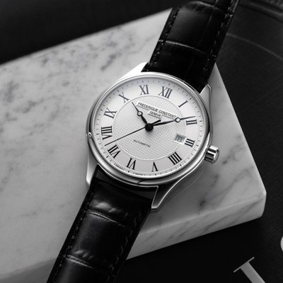 El Frederique Constant Classics Automatic es realmente un reloj de vestir clásico. Una sencilla caja de acero inoxidable de 40 mm, números romanos, esfera guilloché y agujas Breguet cumplen todos los requisitos. A primera vista es un reloj sencillo, pero la calidad se nota en los detalles, así como en el movimiento automático suizo FC-303 (basado en el Sellita SW200-1) con 26 rubíes y 38 horas de reserva de marcha. Es un reloj discreto pero elegante para el día a día.