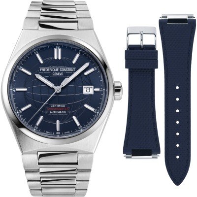 Este reloj Frederique Constant Highlife para caballero está diseñado para ofrecer estilo y versatilidad al hombre moderno. Es un reloj contemporáneo de 41 mm con un brazalete de acero integrado, que puede cambiarse fácilmente por la correa de caucho adicional que viene con el conjunto. La brillante esfera de rayos de sol presenta un motivo de globo terráqueo en relieve, indicadores de hora y manecillas en forma de espada y una ventana de fecha a las tres. El preciso movimiento automático FC-303 (basado en el SW200) cuenta con certificación COSC. El reloj Highlife vive realmente su mejor momento, sin dejar de ser chic, pero un poco impertinente al mismo tiempo. El conjunto es un regalo perfecto para un hombre con buen ojo y un estilo de vida moderno y activo.