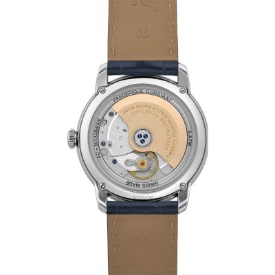 El reloj Classics Premiere es una mezcla perfecta de tradición y elegancia moderna. Los índices aplicados con números romanos y las agujas Breguet acentúan el estilo clásico del reloj. El círculo de minutos y la sección central decorados con un fino motivo guilloché subrayan la modernidad del reloj y le aportan profundidad y textura. El reloj funciona con un movimiento FC-301 (basado en un G100 La Joux-Perret), que ofrece una reserva de marcha de 68 horas. A través del fondo transparente, se puede admirar el motivo Côtes de Genève que adorna el rotor. Con un diámetro de sólo 38,5 mm, el Premiere está dirigido a los hombres, pero estamos seguros de que este reloj también gustará a las mujeres.