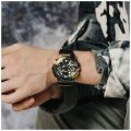 Este reloj marca G-Shock tiene una caja de Acero inoxidable y plástico con un diámetro de 48.8 mm y cuenta con una correa de Resina. Dentro de la caja se encuentra un mecanismo de Casio de alta calidad el cual esta protegido por un cristal Mineral.