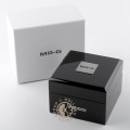 El diseño de los relojes MRG-B5000 de la colección premium de G-Shock se basa en el primer G-Shock de 1983. El patrón de ladrillos de la esfera simboliza su resistencia a los golpes; lance un G-Shock contra una pared y seguirá funcionando. Siguiendo esta tradición, los artesanos de la exclusiva fábrica de Casio en Yamagata, donde los relojes premium MR-G se siguen fabricando en gran parte a mano, han superado con esta serie una auténtica prueba de habilidad metalúrgica. En cada detalle, estos relojes son la cima absoluta en el acabado que mejora aún más la última resistencia a los golpes de G-Shock. La caja está fabricada con una aleación de titanio Ti64 superduro y cuenta con un bisel de COBARION®. Se trata de una aleación de cobalto y cromo que es nada menos que cuatro veces más dura que el titanio puro. Las 25 piezas del bisel están pulidas y atornilladas individualmente para conseguir un aspecto impecable y muy detallado. Los muelles y los topes de silicona también garantizan una excelente absorción de los golpes y la protección del movimiento MRG con tapa trasera chapada en oro. La correa también está fabricada con una aleación de titanio, DAT55G, que es tres veces más dura que el titanio puro y muy resistente a arañazos e impactos. Los remaches se enroscan manualmente en el brazalete, a diferencia de otras series de G-Shock en las que los remaches están fundidos. El MRG-5000D-1DR de color plateado está acabado con un pulido fino y un revestimiento de carburo de titanio que le confiere unos llamativos detalles de alto brillo. El rendimiento funcional del reloj también es excelente, con calibración de la hora controlada por radio y emparejamiento del smartphone mediante Bluetooth®.