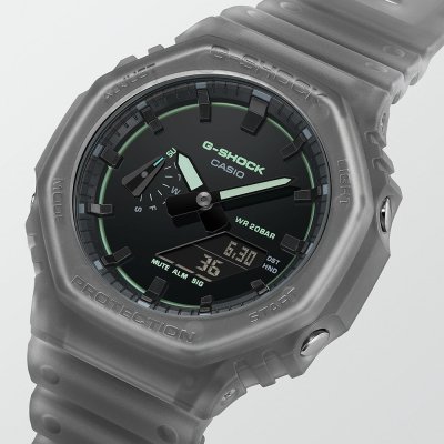 Este reloj marca G-Shock tiene una caja de Plástico de origen biológico con un diámetro de 45.4 mm y cuenta con una correa de Plástico de origen biológico. Dentro de la caja se encuentra un mecanismo de Casio de alta calidad el cual esta protegido por un cristal Mineral.