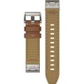 Esta correa de reloj de la :marca está hecha de cuero y se adjunta al reloj mediante quickFit. La banda tiene un ancho de 22 mm y se cierra mediante un hebilla. La correa tiene una montura recta, lo que significa que esta correa es adecuada para todos los relojes de la Garmin con montura recta.
