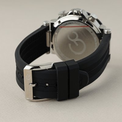 Este reloj marca GC tiene una caja de Inox con un diámetro de 44 mm y cuenta con una correa de Goma. Dentro de la caja se encuentra un mecanismo de Ronda de alta calidad el cual esta protegido por un cristal Mineral.