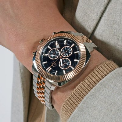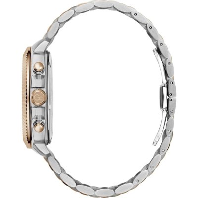 Este reloj marca GC tiene una caja de Inox con un diámetro de 44 mm y cuenta con una correa de Inox. Dentro de la caja se encuentra un mecanismo de Ronda de alta calidad el cual esta protegido por un cristal Mineral recubierto de zafiro.