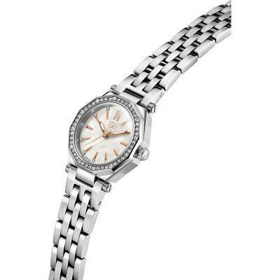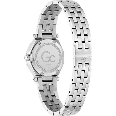 Este reloj marca GC tiene una caja de Inox con un diámetro de 26 mm y cuenta con una correa de Inox. Dentro de la caja se encuentra un mecanismo de Ronda de alta calidad el cual esta protegido por un cristal Mineral recubierto de zafiro.