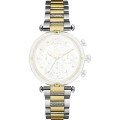 Esta correa de reloj de la :marca está hecha de acero inoxidable y se adjunta al reloj mediante tornillo de montura. La banda tiene un ancho de 18 mm y se cierra mediante un cierre de mariposa invisible. La correa no tiene montura recta, lo que significa que esta correa sólo es adecuada para los relojes que se indican a continuación.