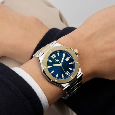 Este reloj marca GC tiene una caja de Inox con un diámetro de 42 mm y cuenta con una correa de Inox. Dentro de la caja se encuentra un mecanismo de de alta calidad el cual esta protegido por un cristal Zafiro.