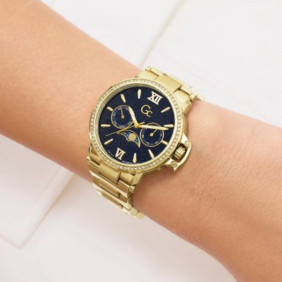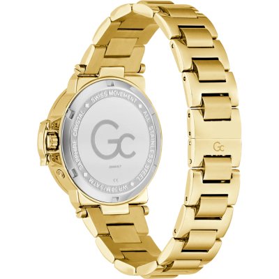 Este reloj marca GC tiene una caja de Inox con un diámetro de 36 mm y cuenta con una correa de Inox. Dentro de la caja se encuentra un mecanismo de Ronda de alta calidad el cual esta protegido por un cristal Zafiro.
