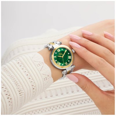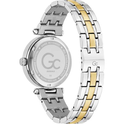 Este reloj marca GC tiene una caja de Inox con un diámetro de 32 mm y cuenta con una correa de Inox. Dentro de la caja se encuentra un mecanismo de Ronda de alta calidad el cual esta protegido por un cristal Zafiro.