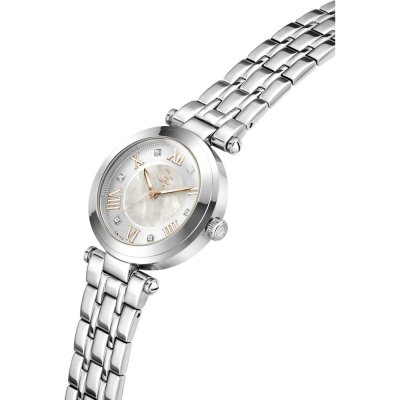Este reloj marca GC tiene una caja de Inox con un diámetro de 32 mm y cuenta con una correa de Inox. Dentro de la caja se encuentra un mecanismo de Ronda de alta calidad el cual esta protegido por un cristal Zafiro.