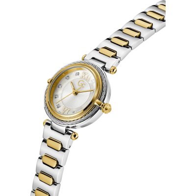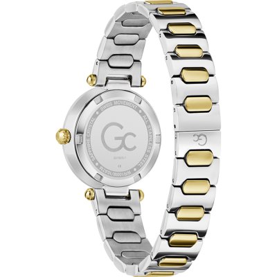 Este reloj marca GC tiene una caja de Inox con un diámetro de 30 mm y cuenta con una correa de Inox. Dentro de la caja se encuentra un mecanismo de Ronda de alta calidad el cual esta protegido por un cristal Zafiro.
