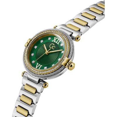 Este reloj marca GC tiene una caja de Inox con un diámetro de 36.5 mm y cuenta con una correa de Inox.