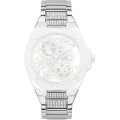 Esta correa de reloj de la :marca está hecha de acero inoxidable y se adjunta al reloj mediante pasadores de resorte. La banda tiene un ancho de 27 mm y se cierra mediante un cierre desplegable con botones pulsadores. La correa no tiene montura recta, lo que significa que esta correa sólo es adecuada para los relojes que se indican a continuación.