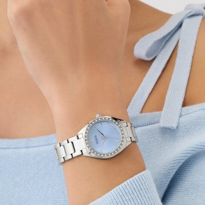 Este reloj marca Guess tiene una caja de Inox con un diámetro de 30 mm y cuenta con una correa de Inox. Dentro de la caja se encuentra un mecanismo de Seiko de alta calidad el cual esta protegido por un cristal Mineral.