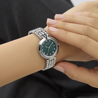 Este reloj marca Guess tiene una caja de Inox con un diámetro de 28 mm y cuenta con una correa de Inox.