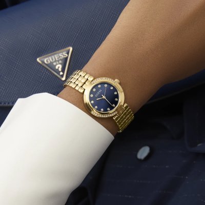 Este reloj marca Guess tiene una caja de Inox con un diámetro de 28 mm y cuenta con una correa de Inox. Dentro de la caja se encuentra un mecanismo de Seiko de alta calidad el cual esta protegido por un cristal Mineral.