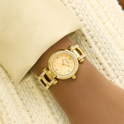 Este reloj marca Guess tiene una caja de Inox con un diámetro de 30 mm y cuenta con una correa de Inox. Dentro de la caja se encuentra un mecanismo de Seiko de alta calidad el cual esta protegido por un cristal Mineral.