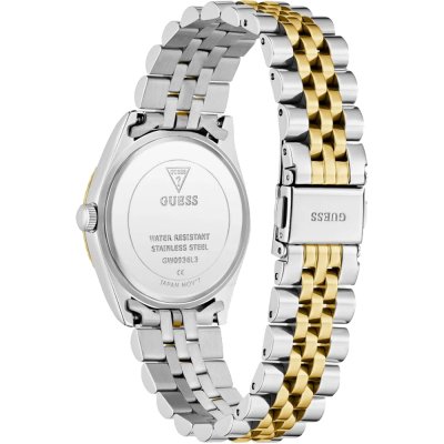 Este reloj marca Guess tiene una caja de Inox con un diámetro de 34 mm y cuenta con una correa de Inox.