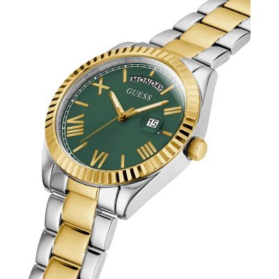 Este reloj marca Guess tiene una caja de Inox con un diámetro de 36 mm y cuenta con una correa de metal. Dentro de la caja se encuentra un mecanismo de Seiko Instruments Inc. de alta calidad el cual esta protegido por un cristal Mineral.