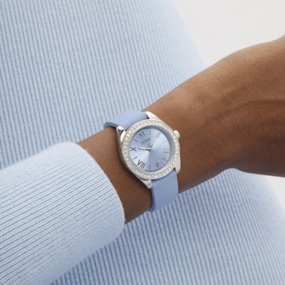 Este reloj marca Guess tiene una caja de Inox con un diámetro de 30 mm y cuenta con una correa de Goma. Dentro de la caja se encuentra un mecanismo de Seiko de alta calidad el cual esta protegido por un cristal Mineral.