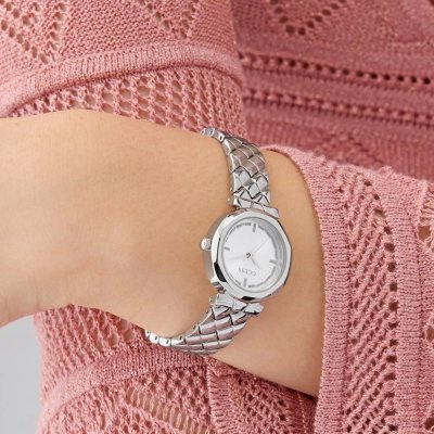 Este reloj marca Guess tiene una caja de Inox con un diámetro de 26 mm y cuenta con una correa de Inox. Dentro de la caja se encuentra un mecanismo de Seiko de alta calidad el cual esta protegido por un cristal Mineral.