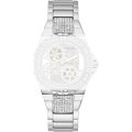 Esta correa de reloj de la :marca está hecha de acero inoxidable y se adjunta al reloj mediante pasadores de acero. La banda tiene un ancho de 24 mm y se cierra mediante un cierre desplegable con botones pulsadores. La correa no tiene montura recta, lo que significa que esta correa sólo es adecuada para los relojes que se indican a continuación.