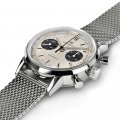El Hamilton Intra-Matic Chrono H ttiene un agradable aire retro, lo cual no es sorprendente, ya que su diseño se basa en un cronógrafo del mismo nombre de 1968. Marcadores rectangulares aplicados con luminiscencia forman los índices horarios. Alrededor de la escala horaria hay una escala de taquímetro que incluye finas marcas blancas. Las agujas son de estilo bastón y cuentan con luminiscencia aplicada (falsa pátina). Añadiendo a la vibra deportiva de los años 60 están los altos pulsadores de pistón, la corona firmada tipo píldora y el bisel pulido con un cristal de zafiro tipo caja que completa el aspecto. La caja de tamaño contemporáneo de 40 mm está completamente pulida, con asas anguladas hacia abajo para un uso cómodo y resistencia al agua de 10 ATM. Este reloj es impulsado por un movimiento manual Hamilton H-51 con espiral Nivachron antimagnético que ofrece una reserva de energía extendida de alrededor de 60 horas.